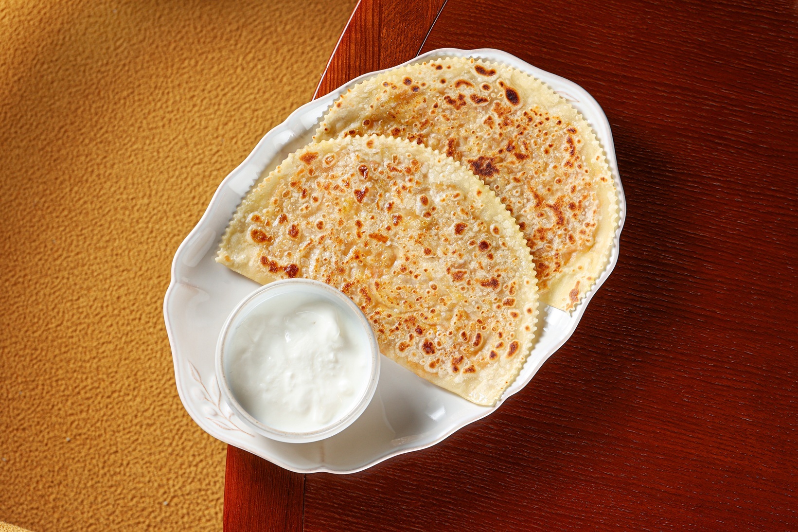 - кутаб с халвой и гранатовым соусом, 550 р.